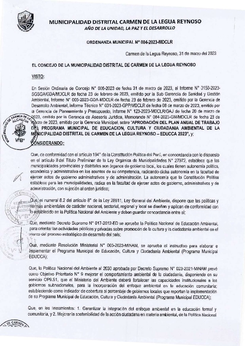 Programa Municipal de Educación, Cultura y Ciudadanía Ambiental de la Municipalidad Distrital de Carmen de La Legua