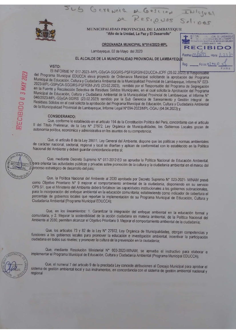 Programa Municipal de Educación, Cultura y Ciudadanía Ambiental de la Municipalidad Provincial de Lambayeque