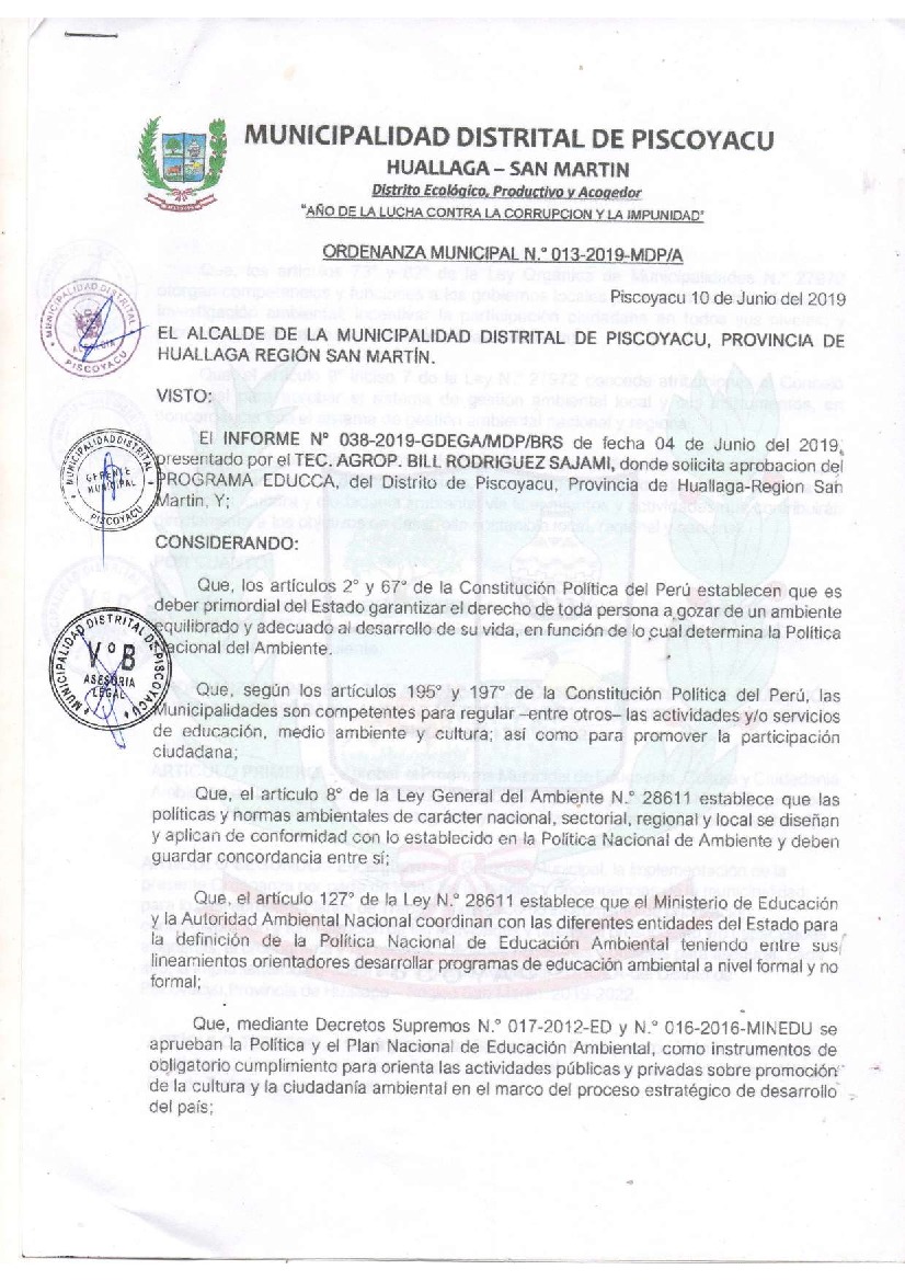 Programa Municipal de Educación, Cultura y Ciudadanía Ambiental de la Municipalidad Distrital de Piscoyacu 2019 - 2022