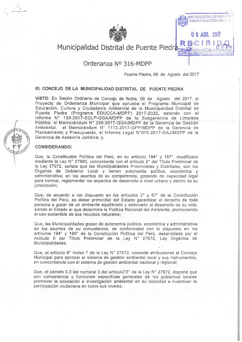Programa Municipal de Educación, Cultura y Ciudadanía Ambiental de la Municipalidad Distrital de Puente Piedra 2017 - 2022