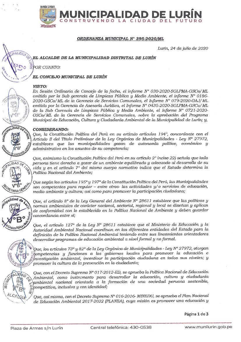 Programa Municipal de Educación, Cultura y Ciudadanía Ambiental de la Municipalidad Distrital de Lurín 2020- 2022