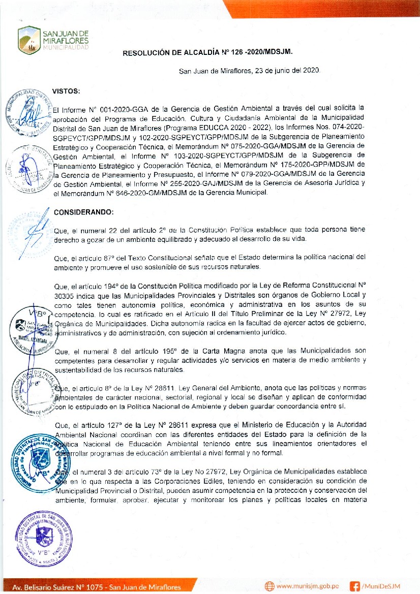 Programa Municipal de Educación, Cultura y Ciudadanía Ambiental de la Municipalidad Distrital de San Juan de Miraflores 2020- 2022