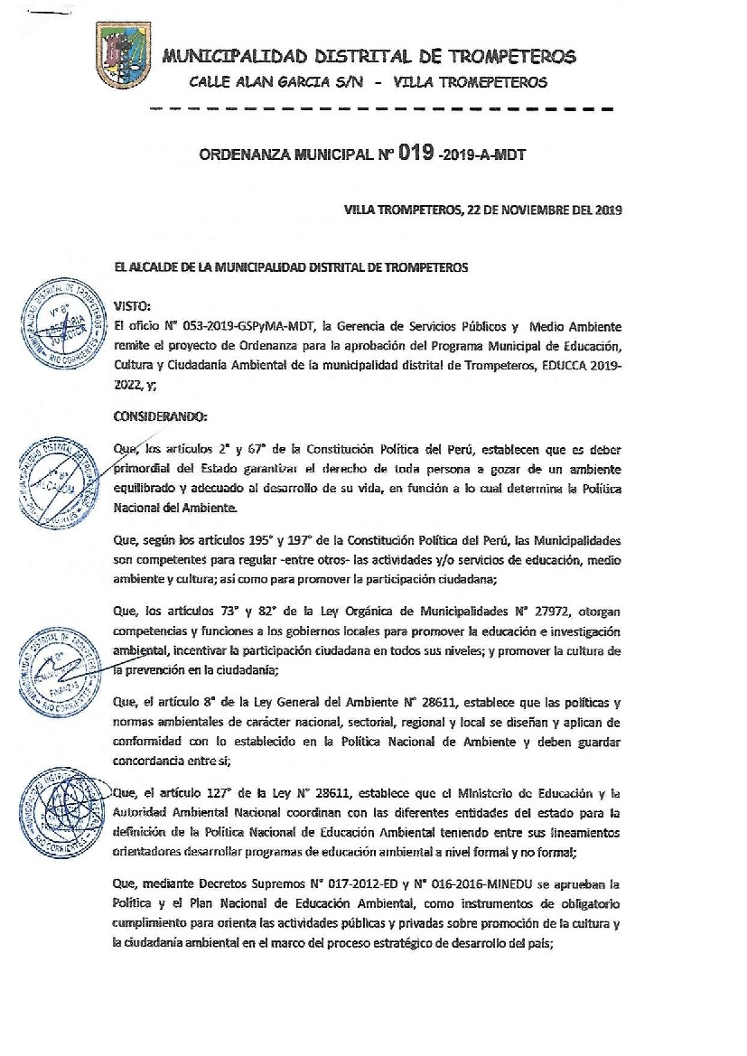 Programa Municipal de Educación, Cultura y Ciudadanía Ambiental de la Municipalidad Distrital de Trompeteros 2019 – 2022