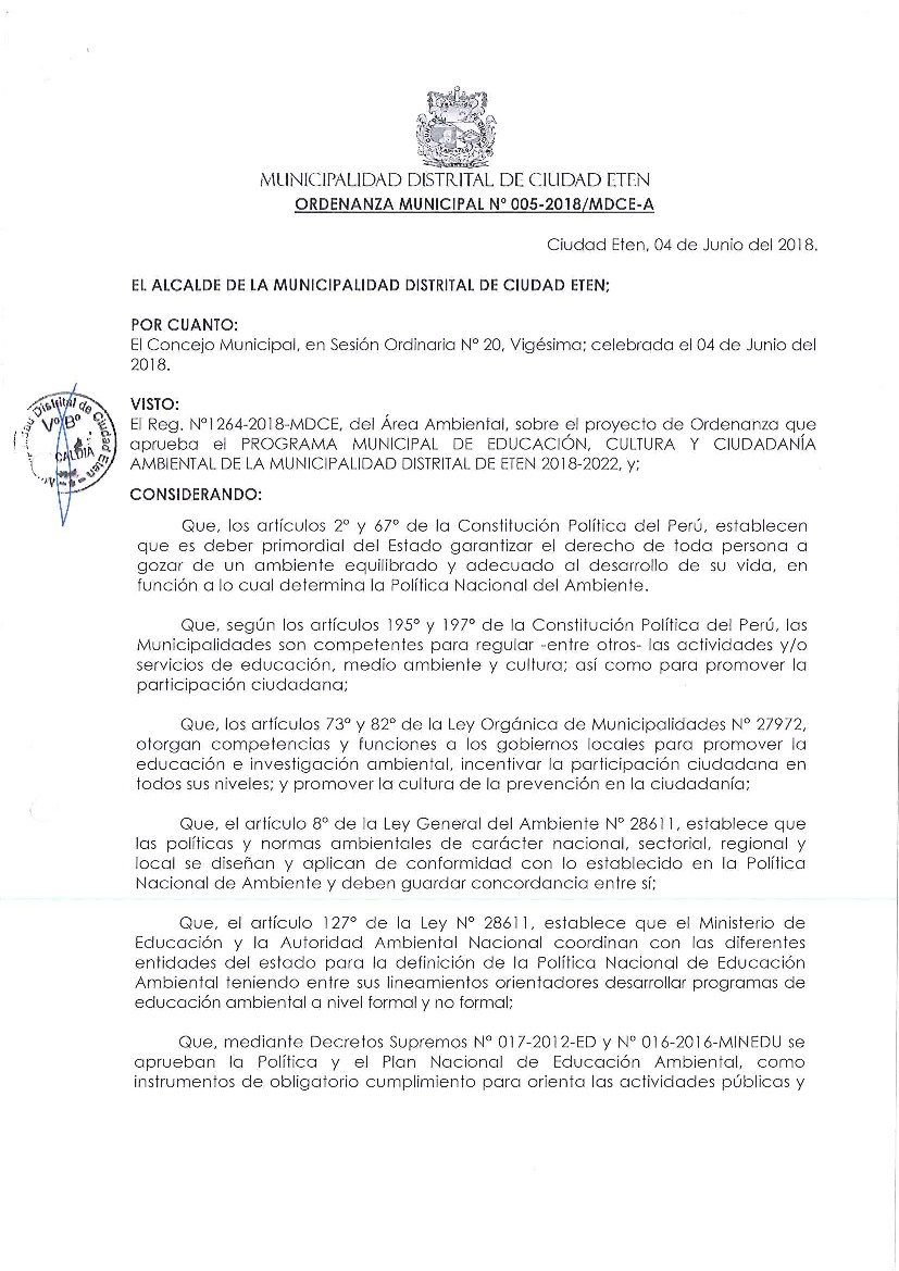 Programa Municipal de Educación, Cultura y Ciudadanía Ambiental de la Municipalidad Distrital de Eten 2018 – 2022