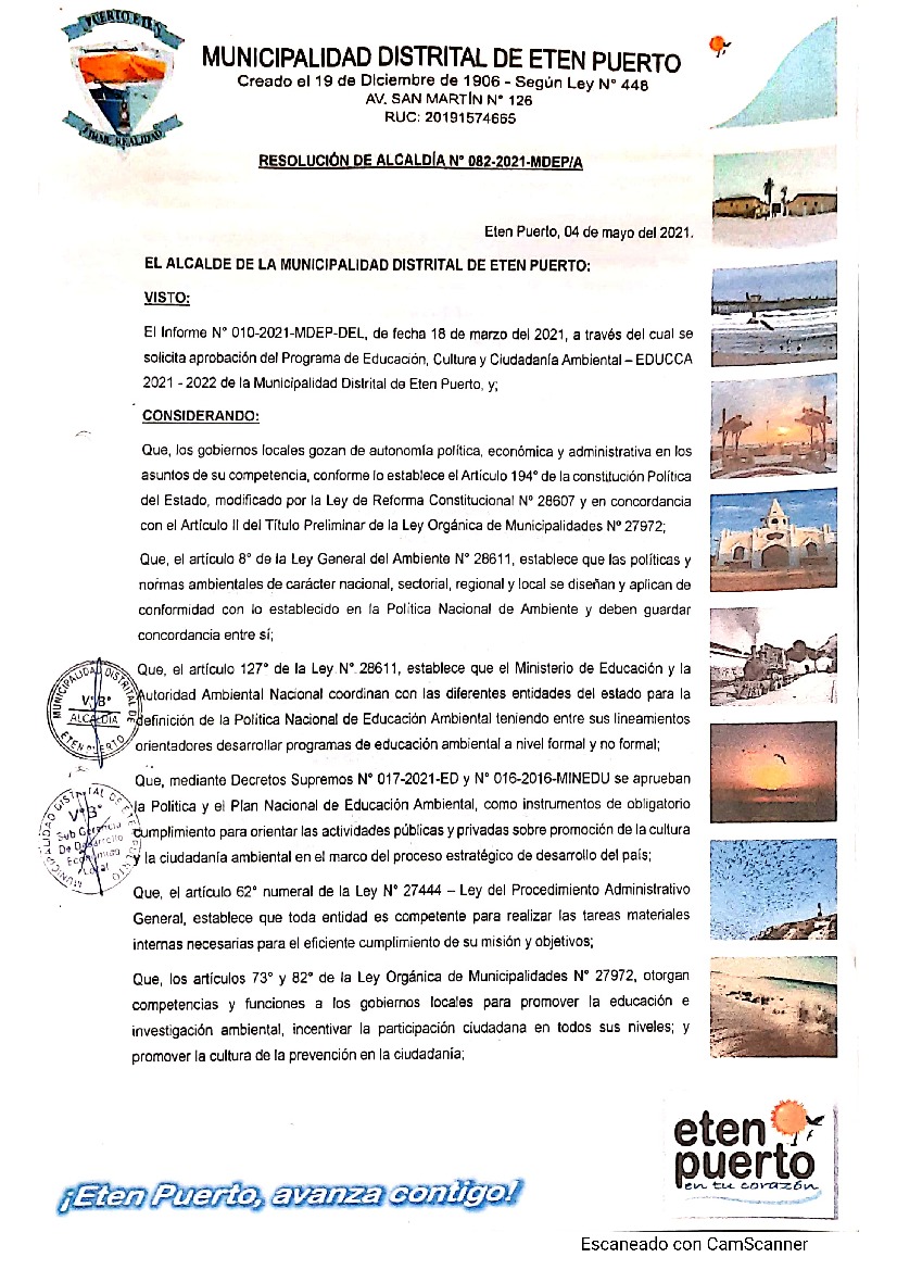 Programa Municipal de Educación, Cultura y Ciudadanía Ambiental de la Municipalidad Distrital de Eten Puerto 2021 – 2022