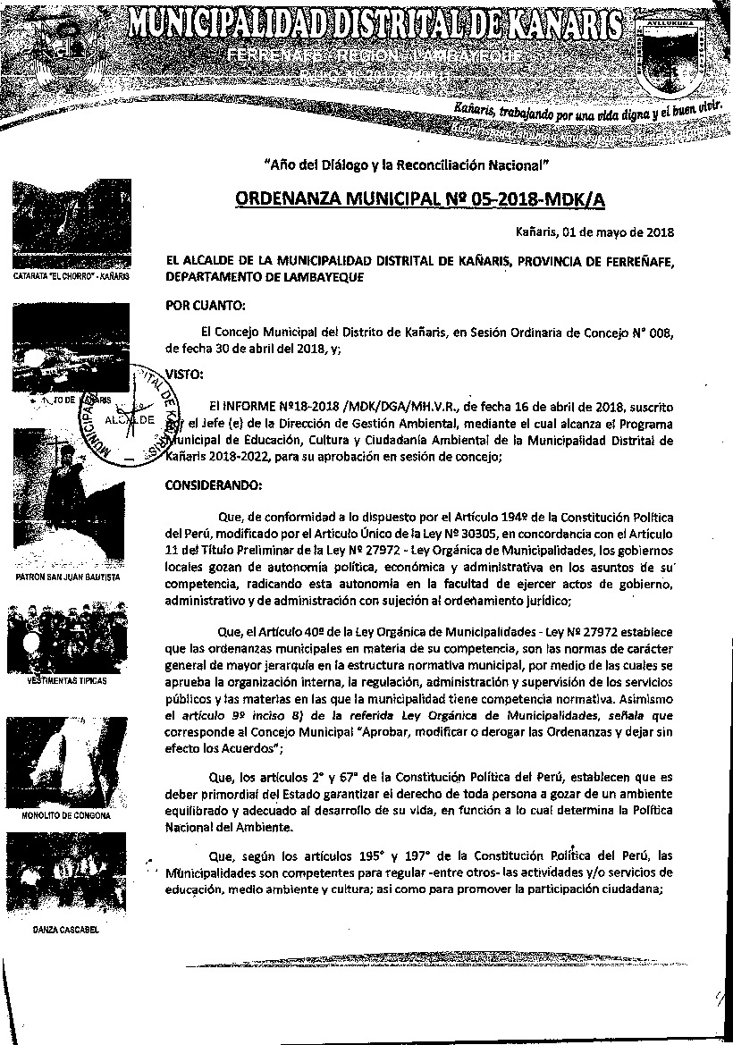 Programa Municipal de Educación, Cultura y Ciudadanía Ambiental de la Municipalidad Distrital de Cañaris 2018 – 2022