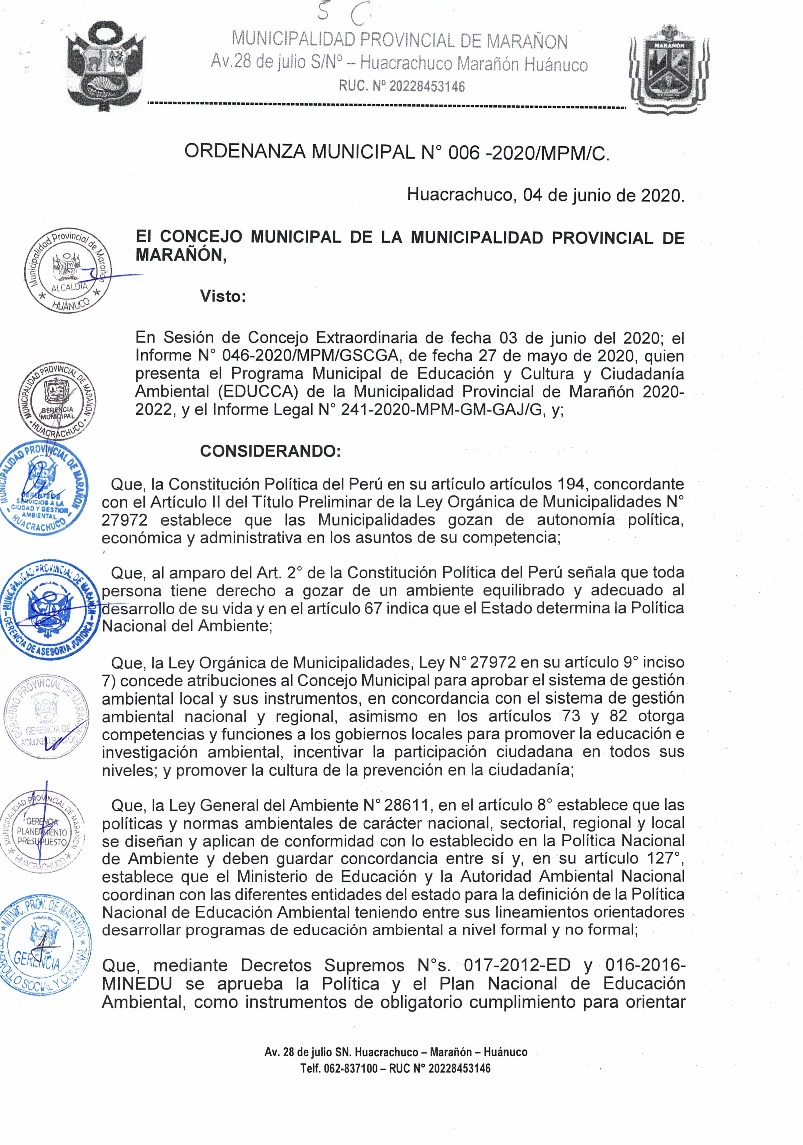 Programa Municipal de Educación, Cultura y Ciudadanía Ambiental de la Municipalidad Provincia de Marañón 2020 - 2022