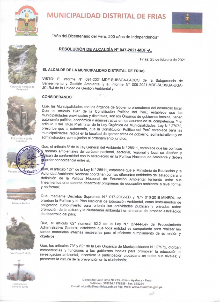 Programa Municipal de Educación, Cultura y Ciudadanía Ambiental de la Municipalidad Distrital de Frías 2021 – 2022
