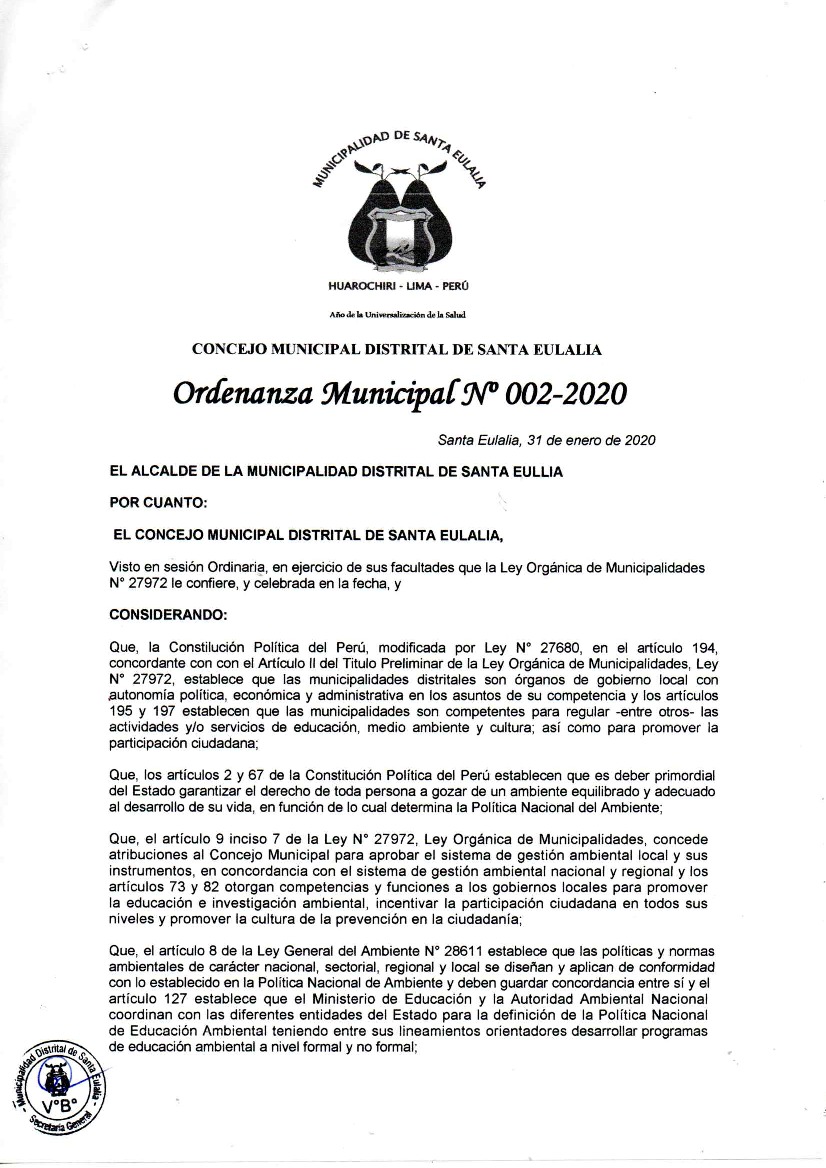 Programa Municipal de Educación, Cultura y Ciudadanía Ambiental de la Municipalidad Distrital de Santa Eulalia 2020- 2022