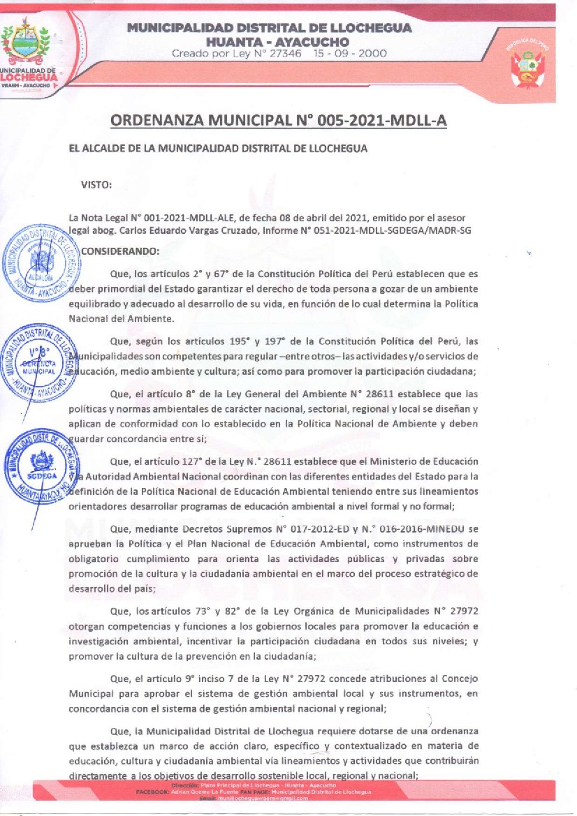 Programa Municipal de Educación, Cultura y Ciudadanía Ambiental de la Municipalidad Distrital de Llochegua 2021-2022