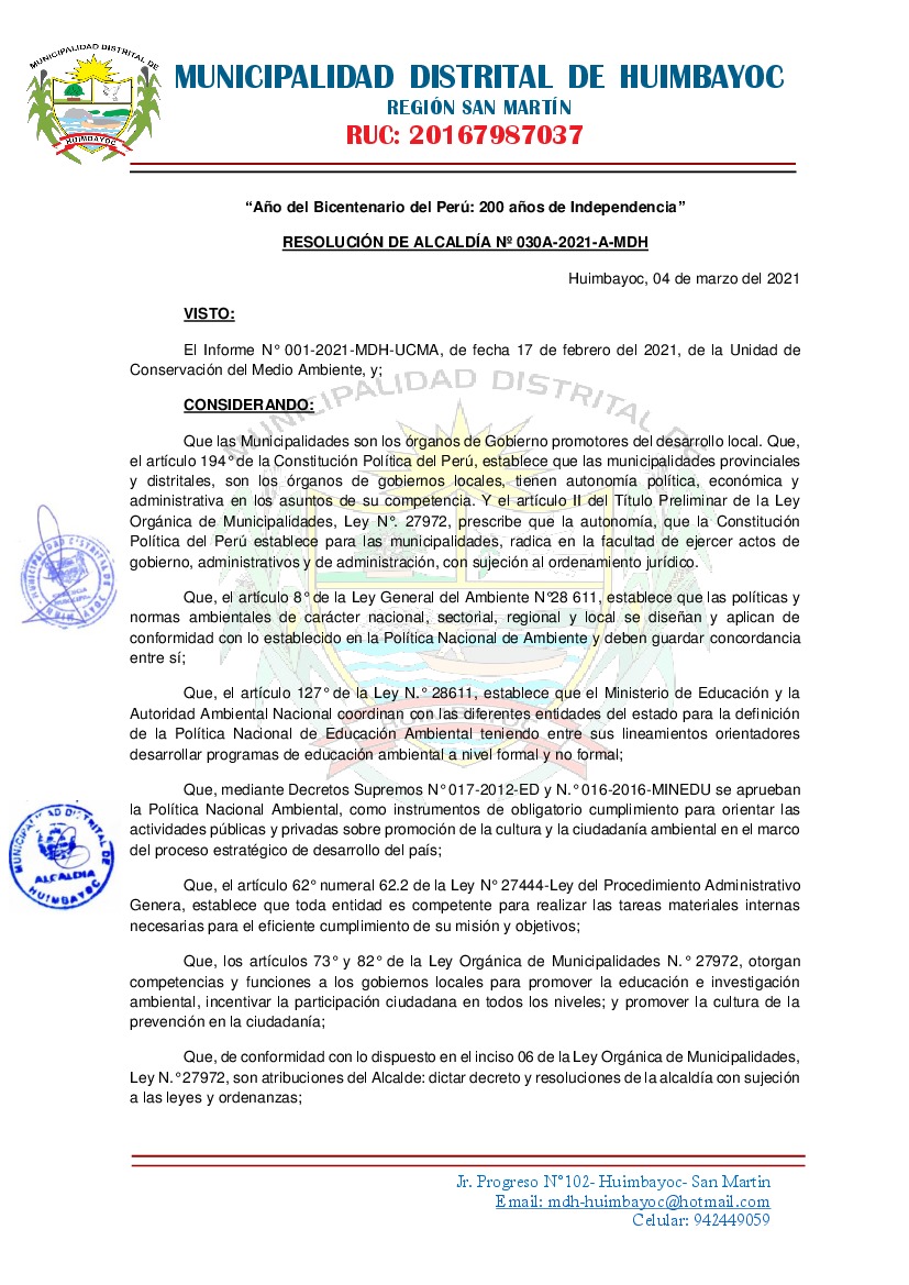 Municipalidad Distrital de Huimbayoc
