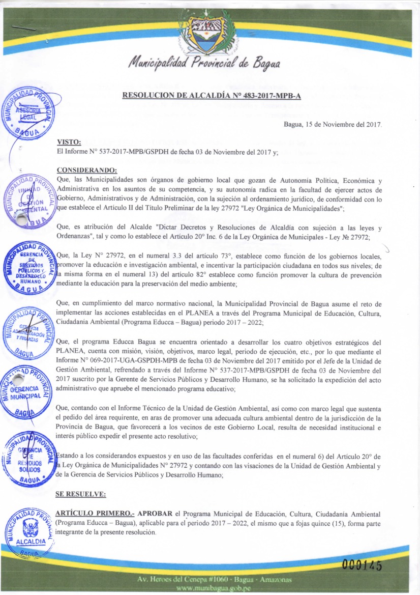 Programa Municipal de Educación, Cultura y Ciudadanía Ambiental de la Municipalidad Provincial de Bagua 2017 - 2022