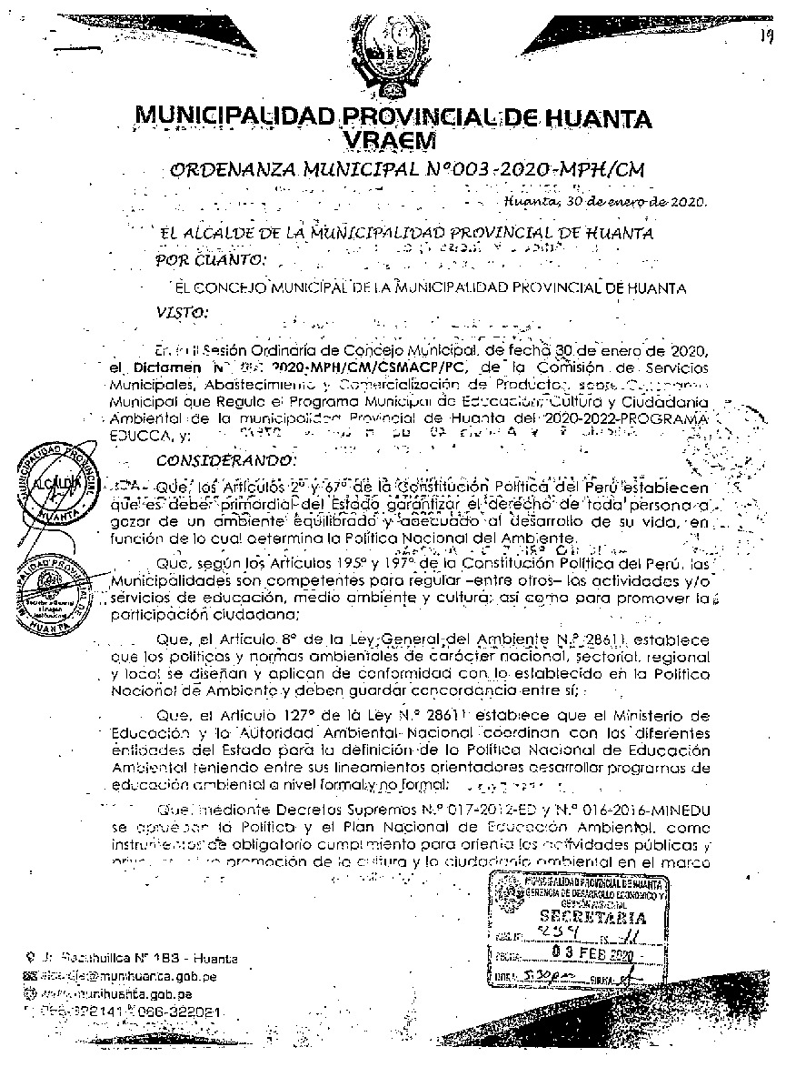 Programa Municipal de Educación, Cultura y Ciudadanía Ambiental de la Municipalidad Provincial de Huanta 2020-2022