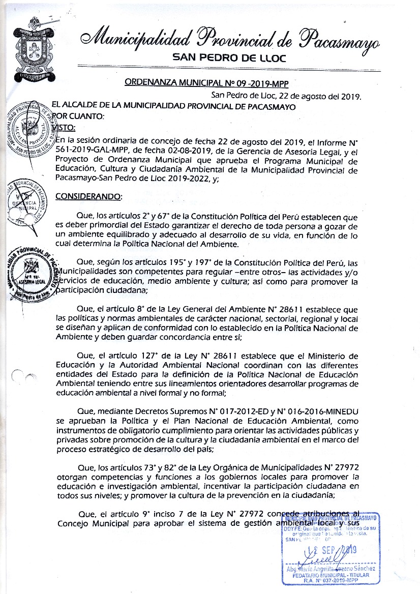 Programa Municipal de Educación, Cultura y Ciudadanía Ambiental de la Municipalidad Provincial de Pacasmayo 2019-2022