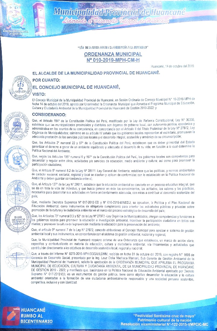 Programa Municipal de Educación, Cultura y Ciudadanía Ambiental de la Municipalidad Provincial de Huancané 2019-2022