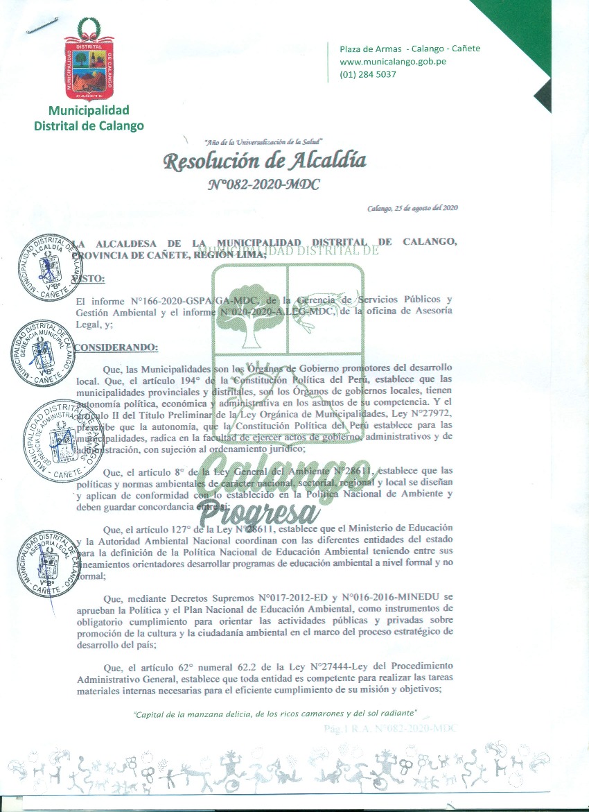 Programa Municipal de Educación, Cultura y Ciudadanía Ambiental de la Municipalidad Distrital de Calango 2020- 2022
