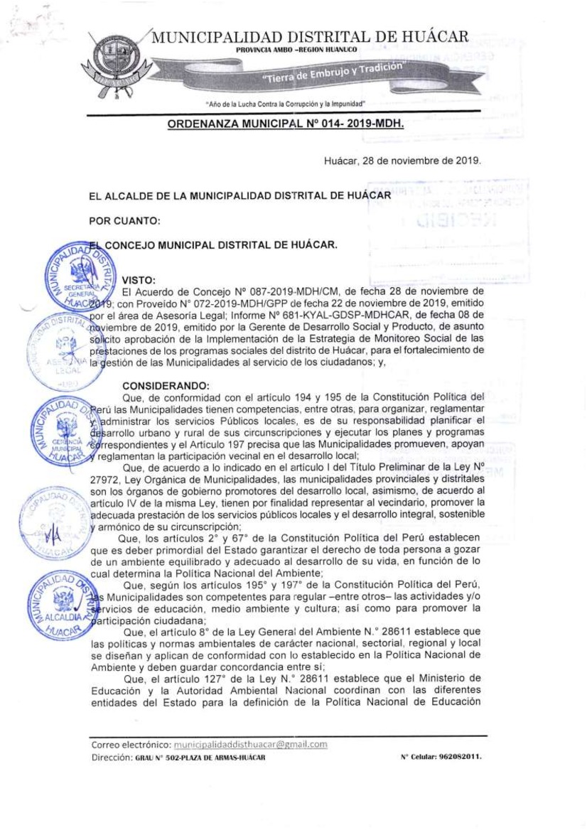 Programa Municipal de Educación, Cultura y Ciudadanía Ambiental de la Municipalidad Distrital de Huácar 2019 – 2022