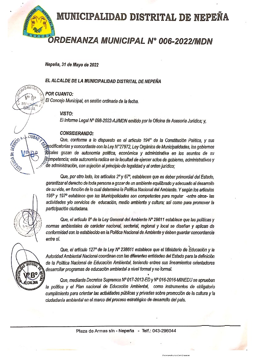 Programa Municipal de Educación, Cultura y Ciudadanía Ambiental de la Municipalidad Distrital de Nepeña 2022