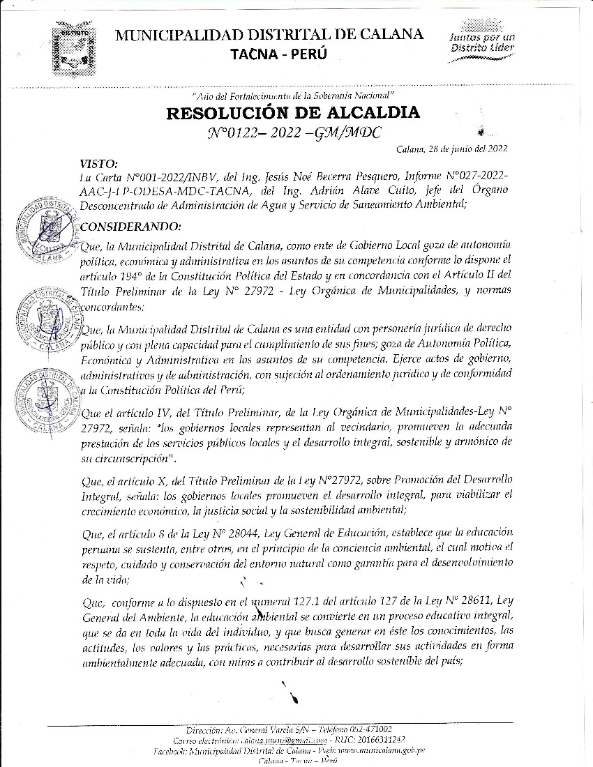 Programa Municipal de Educación, Cultura y Ciudadanía Ambiental de la Municipalidad Distrital de Calana - 2022