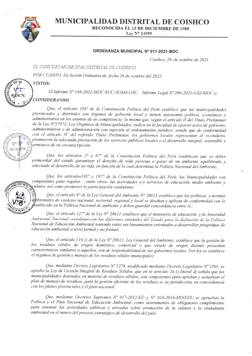 Programa Municipal de Educación, Cultura y Ciudadanía Ambiental de la Municipalidad Distrital de Coishco 2021 - 2022