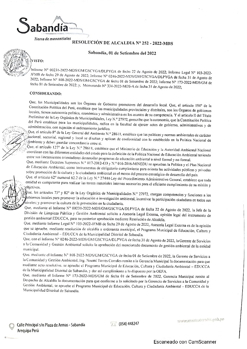 Programa Municipal de Educación, Cultura y Ciudadanía Ambiental de la Municipalidad Distrital de Sabandia 2022