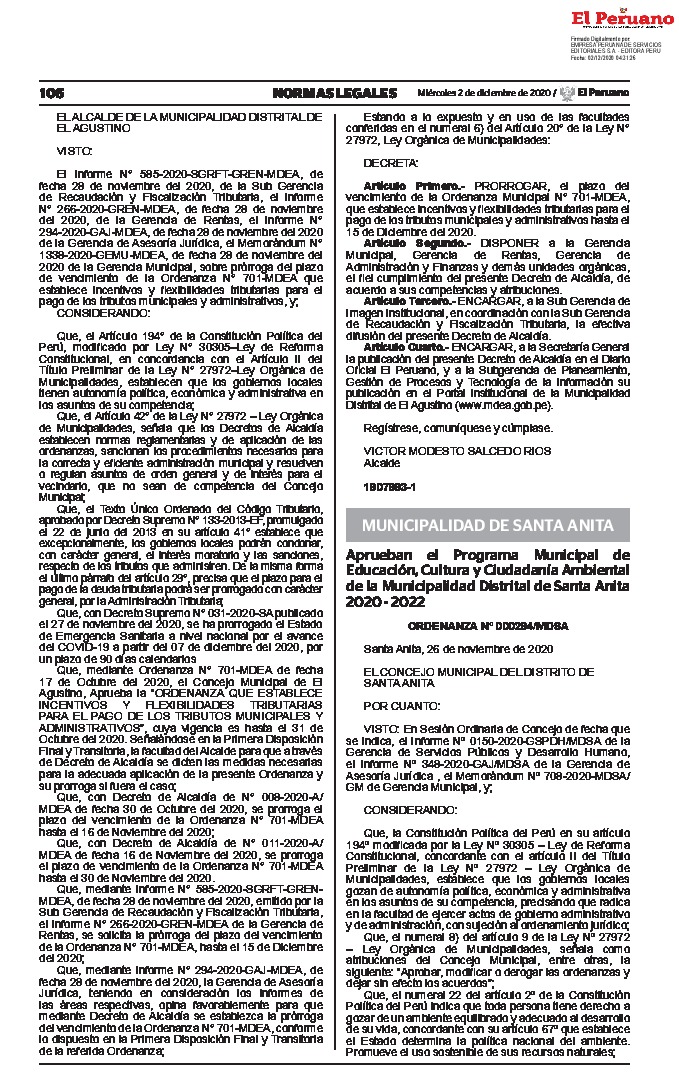 Programa Municipal de Educación, Cultura y Ciudadanía Ambiental de la Municipalidad Distrital de Santa Anita 2020- 2022