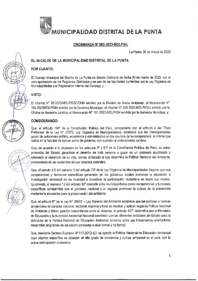 La presente Ordenanza aprueba el Programa Municipal de Educación, Cultura y Ciudadanía Ambiental de la Municipalidad Distrital de La Punta (Callao), con la finalidad de promover la cultura y la educación ambiental para la formación de ciudadanas y ciudadanos ambientalmente responsables e incentivar la participación ciudadana en todos sus niveles.