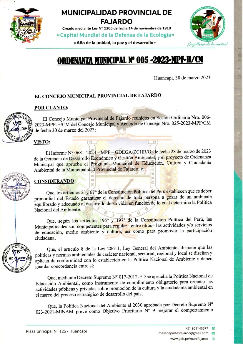 Programa Municipal de Educación Cultura y Ciudadanía Ambiental de la Municipalidad Provincial de Fajardo (Ayacucho)