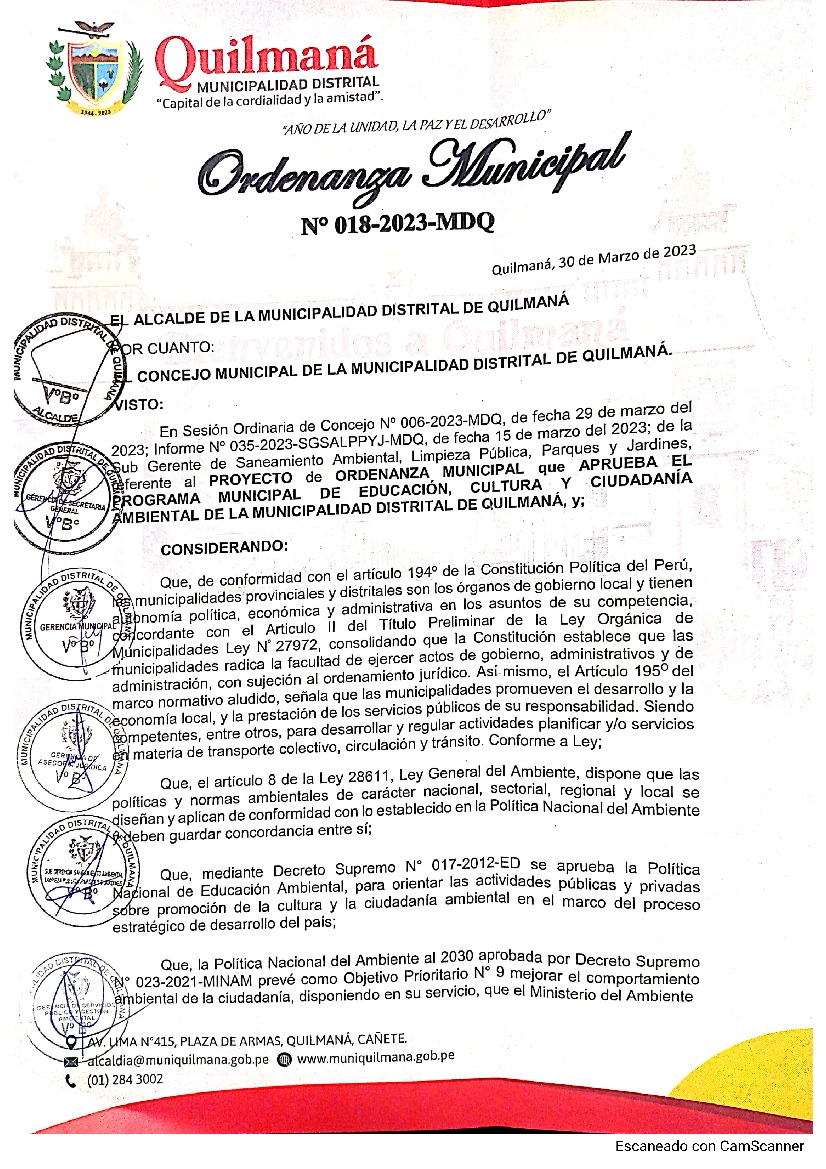 Programa Municipal de Educación, Cultura y Ciudadanía Ambiental de la Municipalidad Distrital de Quilmaná…