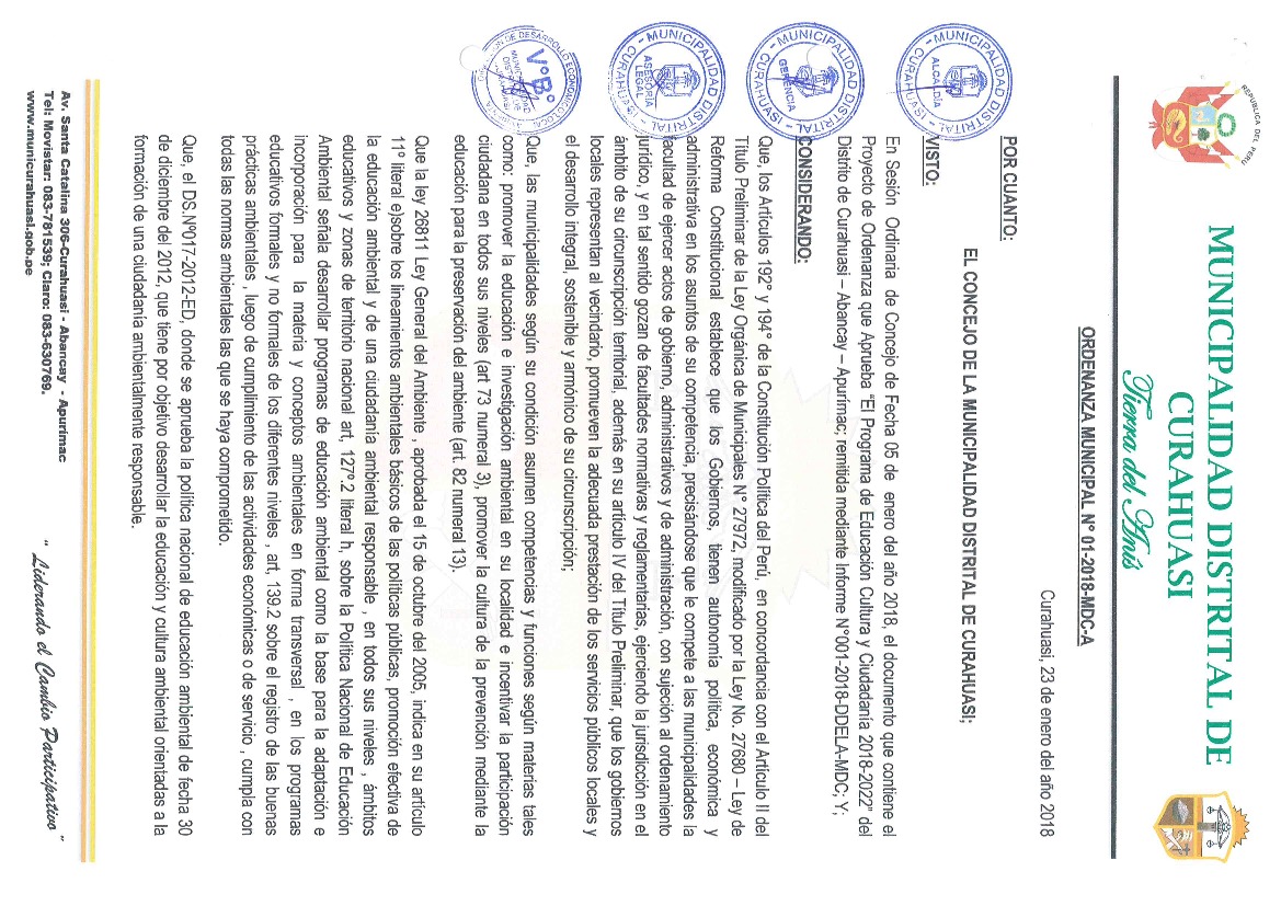 Programa Municipal EDUCCA 2018-2022 Municipalidad Distrital de Curahuasi