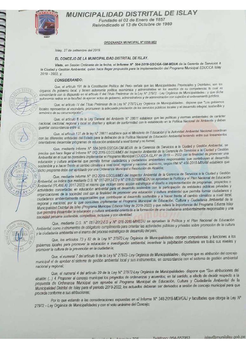Programa Municipal EDUCCA 2019-2022 Municipalidad Distrital de Islay