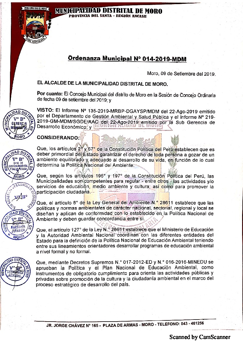 Programa Municipal EDUCCA 2019-2022 Municipalidad Distrital de Moro