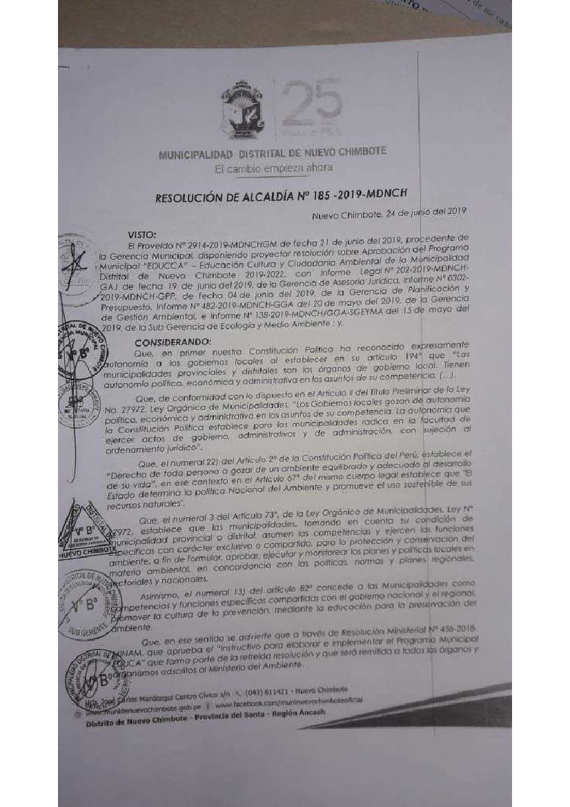 Programa Municipal EDUCCA 2019-2022 Municipalidad Distrital de Nuevo Chimbote