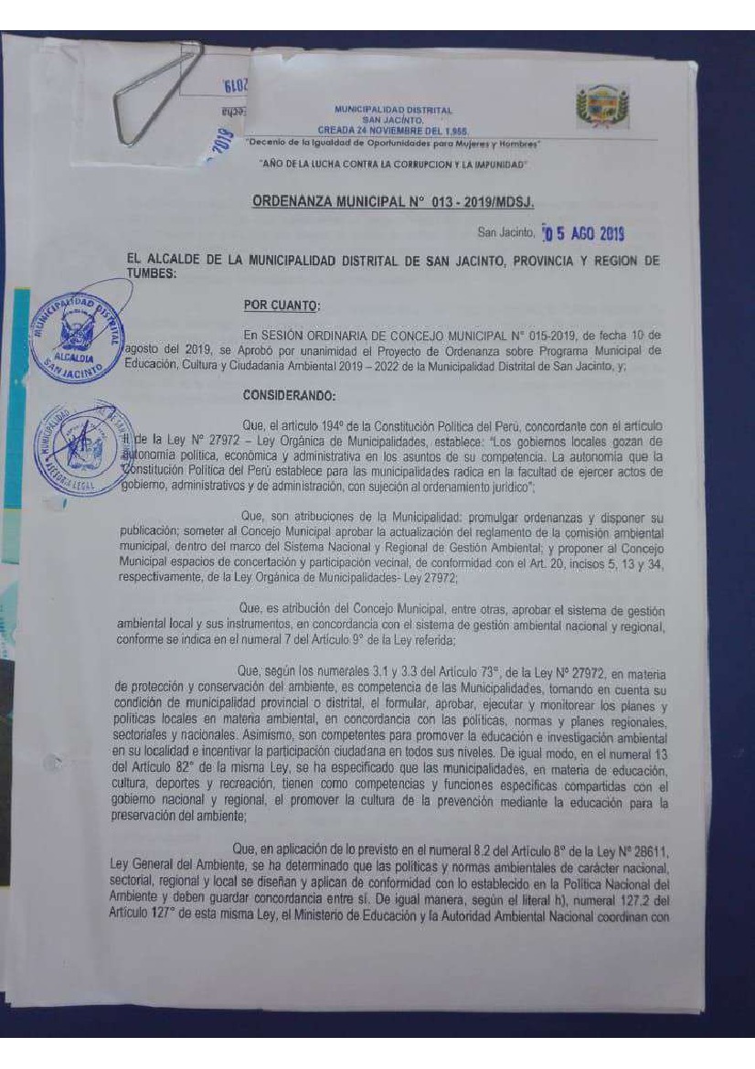 Programa Municipal EDUCCA 2019-2022 Municipalidad Distrital de San Jacinto