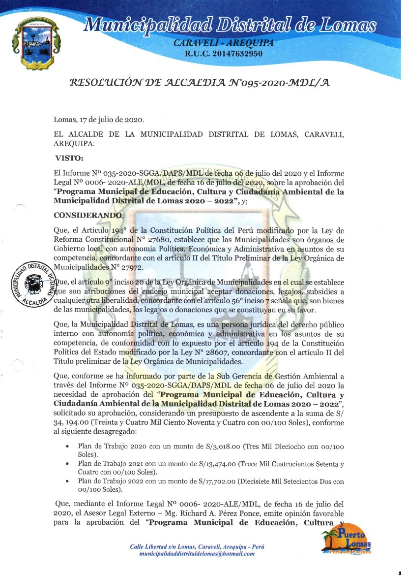 Municipalidad Distrital de Lomas