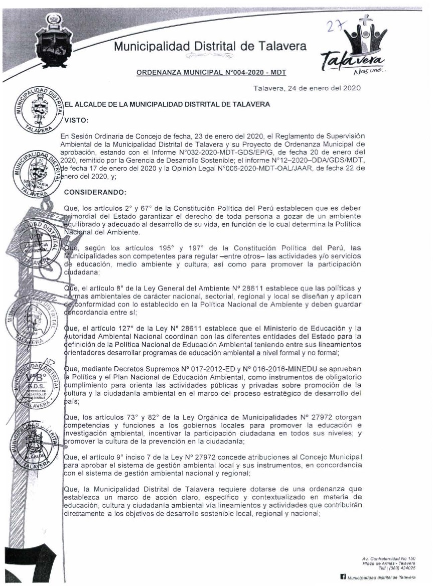 Programa Municipal EDUCCA 2020-2022 Municipalidad Distrital de Talavera