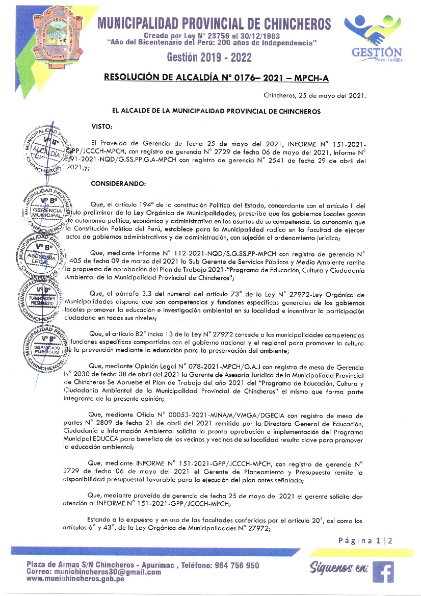 Programa Municipal EDUCCA 2021-2022 MUNICIPALIDAD PROVINCIAL DE CHINCHEROS