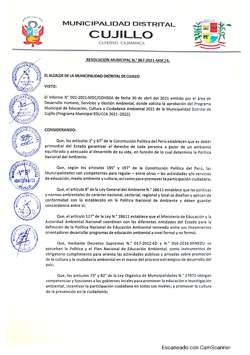 Resolución de Alcaldía N° 067-2021-MDC/A - Municipalidad Distrital de Cujillo - Cutervo