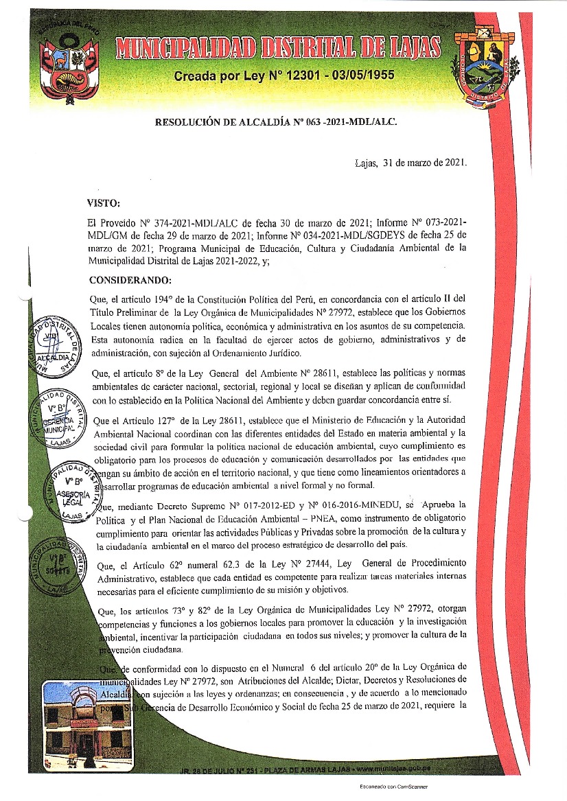 Resolución de Alcaldía N° 063-2021-MDL-A - Municipalidad Distrital de Lajas