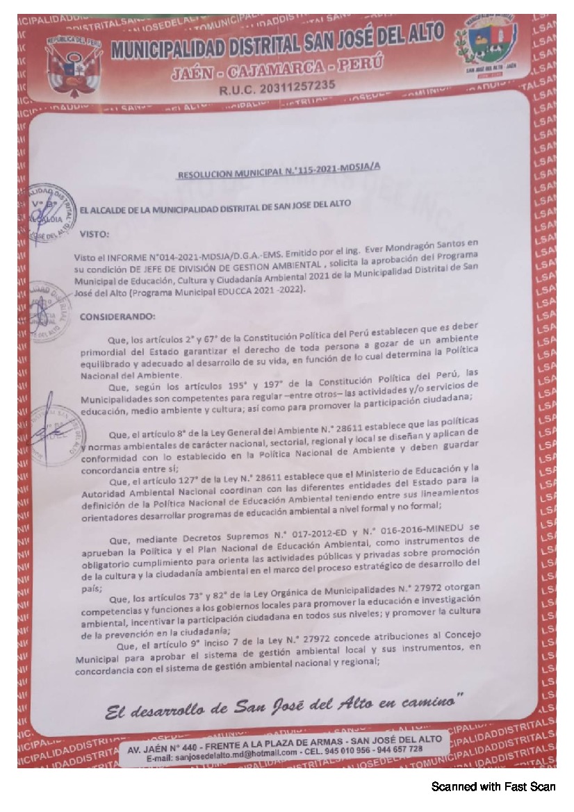 Resolución de Alcaldía N°0115-2021-MDSA-A - Municipalidad Distrital de San José del Alto - Jaén