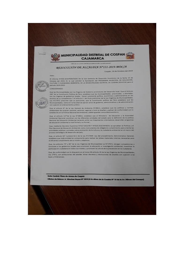 Resolución de Alcaldía N° 131-2019-MDC/A - Municipalidad Distrital de Cospan