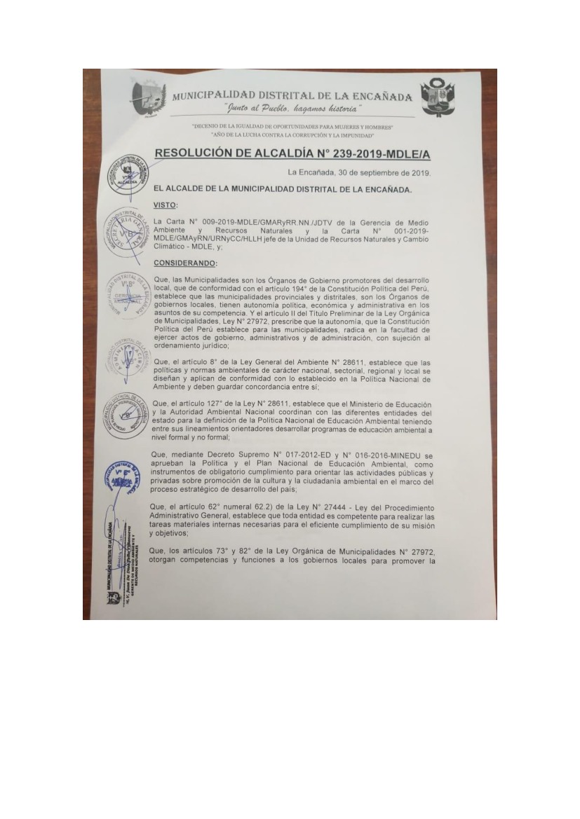 Resolución de Alcaldía N° 239-2019-MDLE/A - Municipalidad Distrital de La Encañada