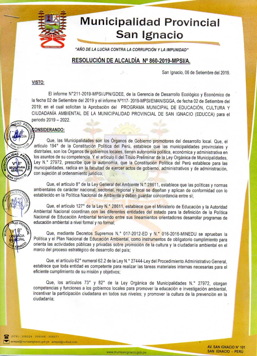 Resolución de Alcaldía N° 860-2019-MPSI/A - Municipalidad Provincial de San Ignacio