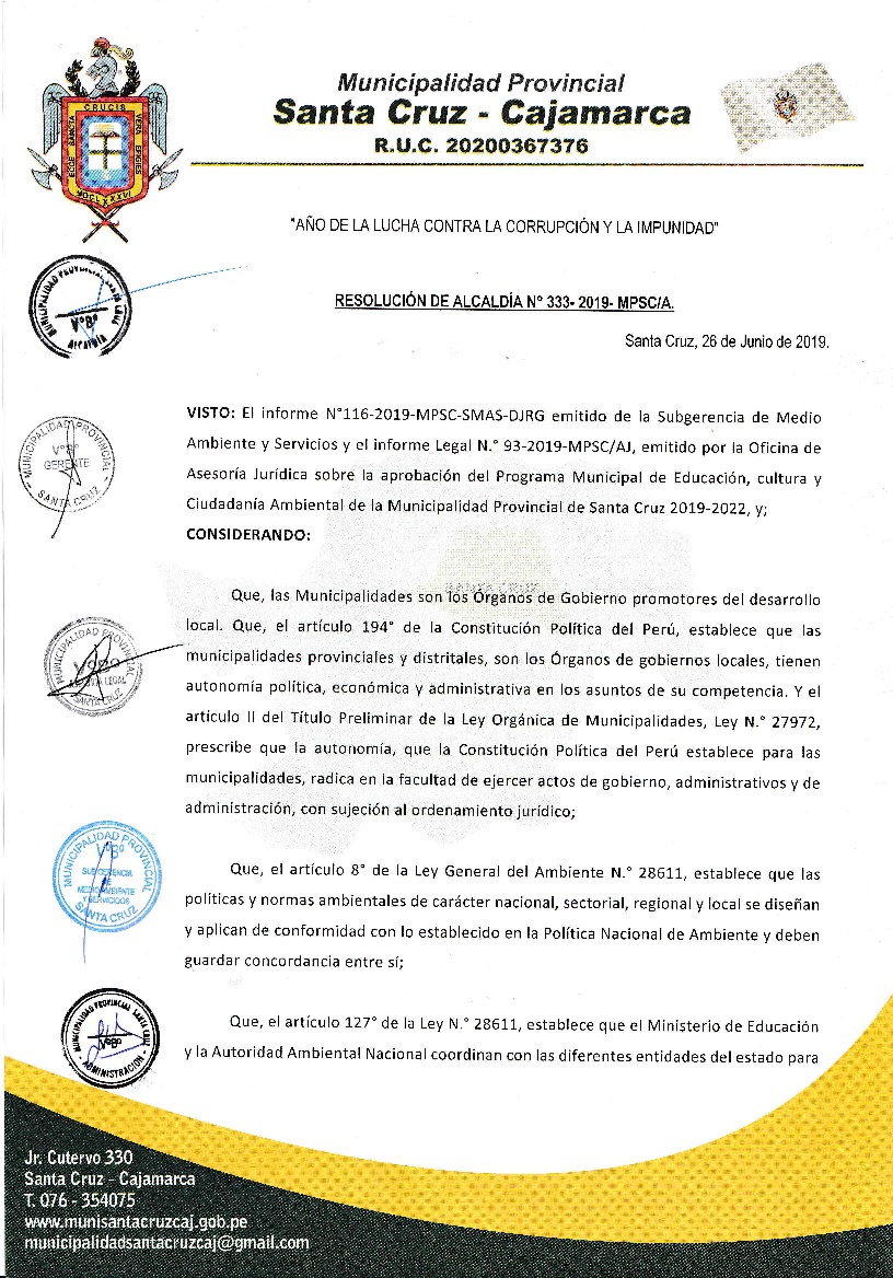 Resolución de Alcaldía N° 333-2019-MPSC/A - Municipalidad Provincial de Santa Cruz