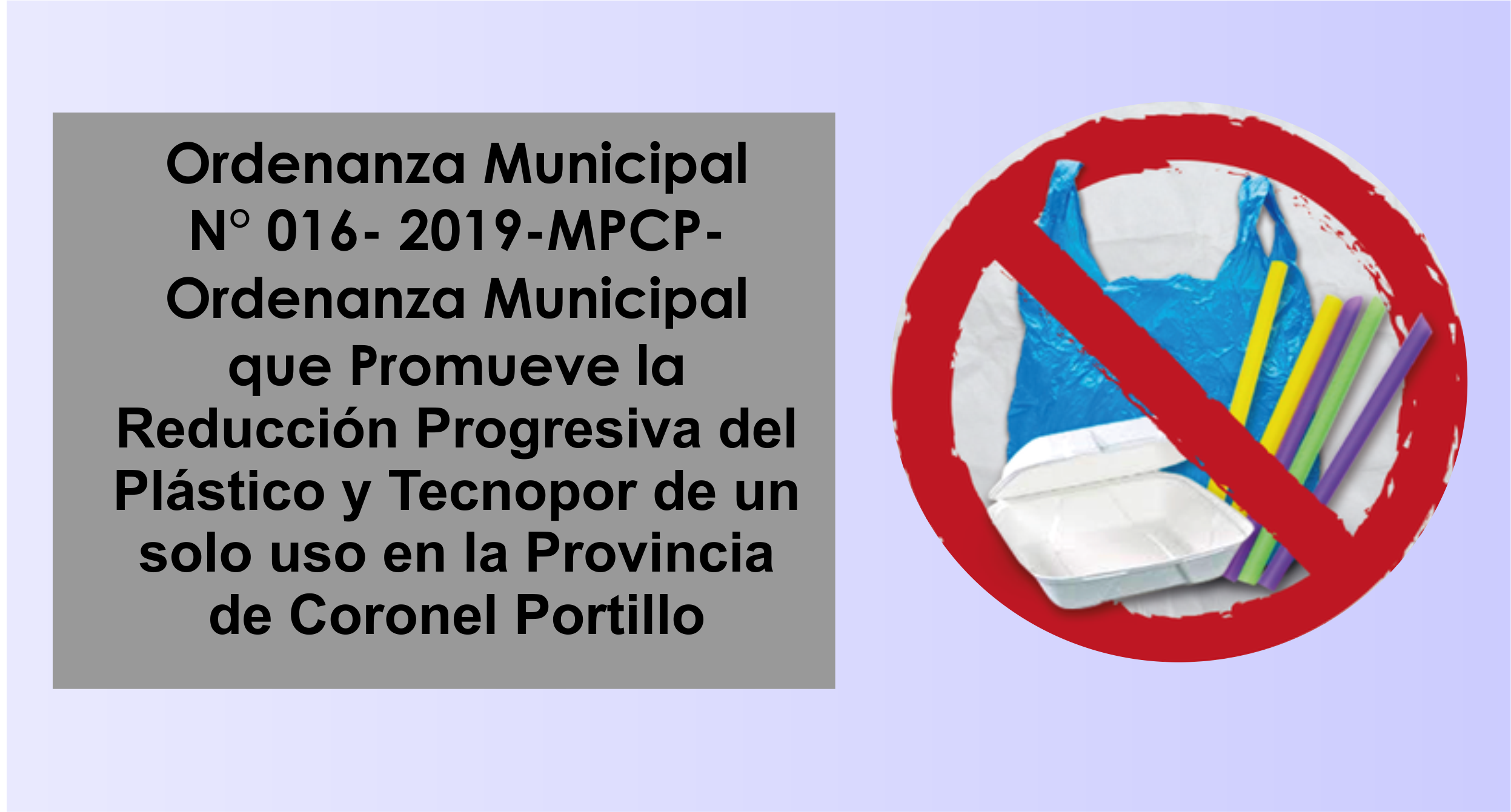 Promover la reducción progresiva del uso y distribución de bolsas, sorbetes y utensilios, y envases de plástico y tecnopor de un solo uso, a fin de minimizar la generación de residuos sólidos contaminantes en la circunscripción territorial de la provincia de Coronel Portillo, conforme a lo dispuesto en el Art. 8º numeral 1 inciso 1.1 y 1.2 de la Ley N° 27972 – Ley Orgánica de Municipalidades, a través de diversas acciones conducen a: