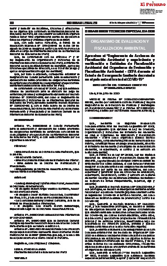 “Reglamento de Acciones de Fiscalización Ambiental y seguimiento y verificación a Entidades de Fiscalización Ambiental del Organismo de Evaluación y Fiscalización Ambiental - OEFA durante el Estado de Emergencia Sanitaria decretado en el país ante el brot