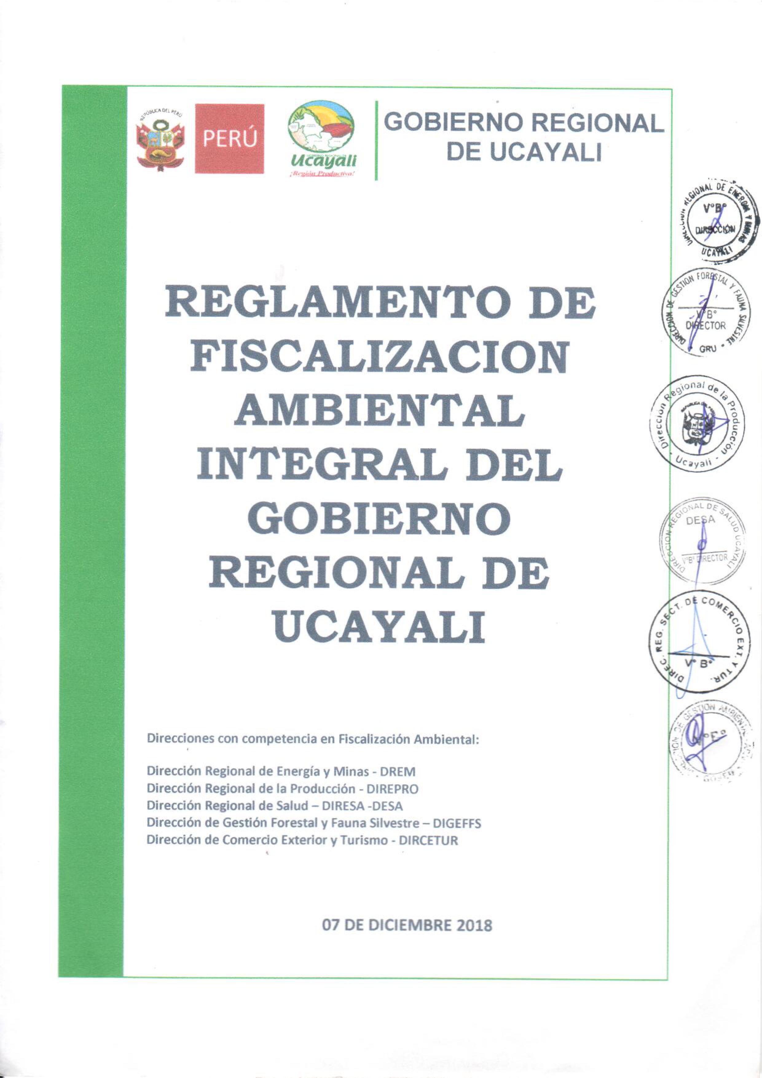 REGLAMENTO DE FISCALIZACIÓN AMBIENTAL INTEGRAL DEL GOBIERNO REGIONAL DE UCAYALI.