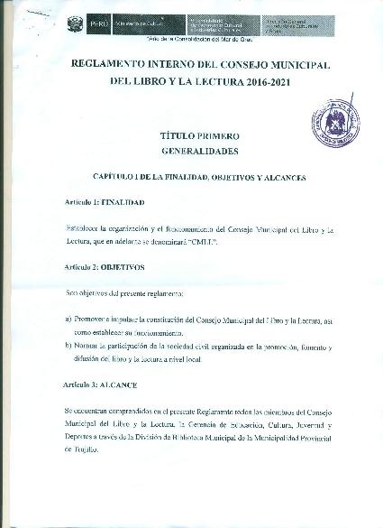 Reglamento Interno del Consejo Municipal del Libro y la Lectura 2016-2021 de la Municipalidad Provincial de Trujillo