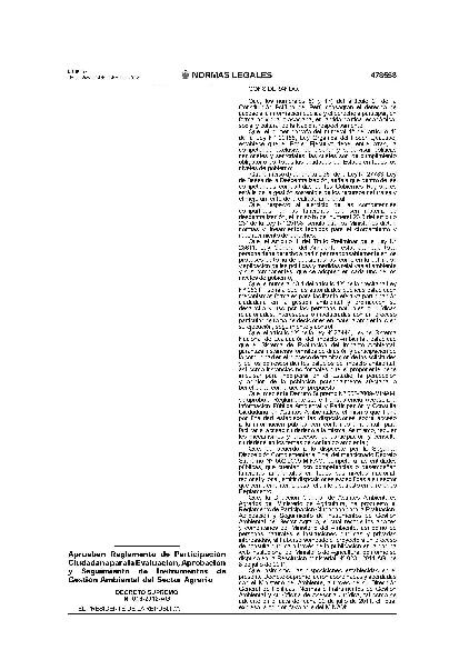 Reglamento de participación ciudadana para la evaluacion aprobacion y seguimiento de instrumentos de gestión ambiental del sector agrario