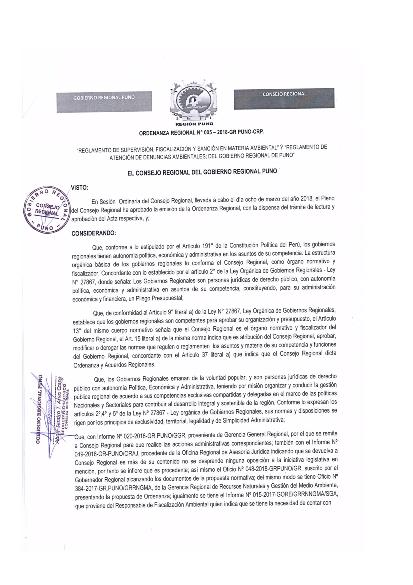 REGLAMENTO DE SUPERVISION, FISCALIZACIÓN EN MATERIA AMBIENTAL Y REGLAMENTO DE ATENCIÓN DE DENUNCIAS AMBIENTALES,DEL GOBIERNO REGIONAL DE PUNO